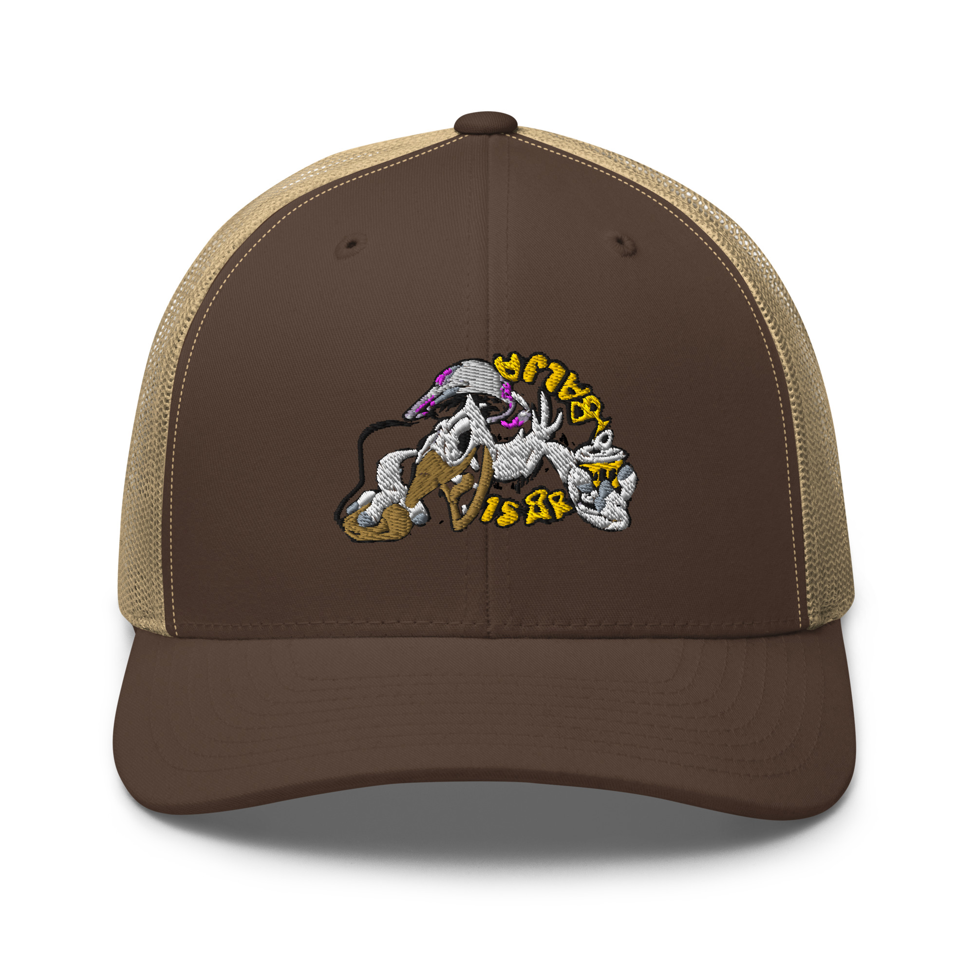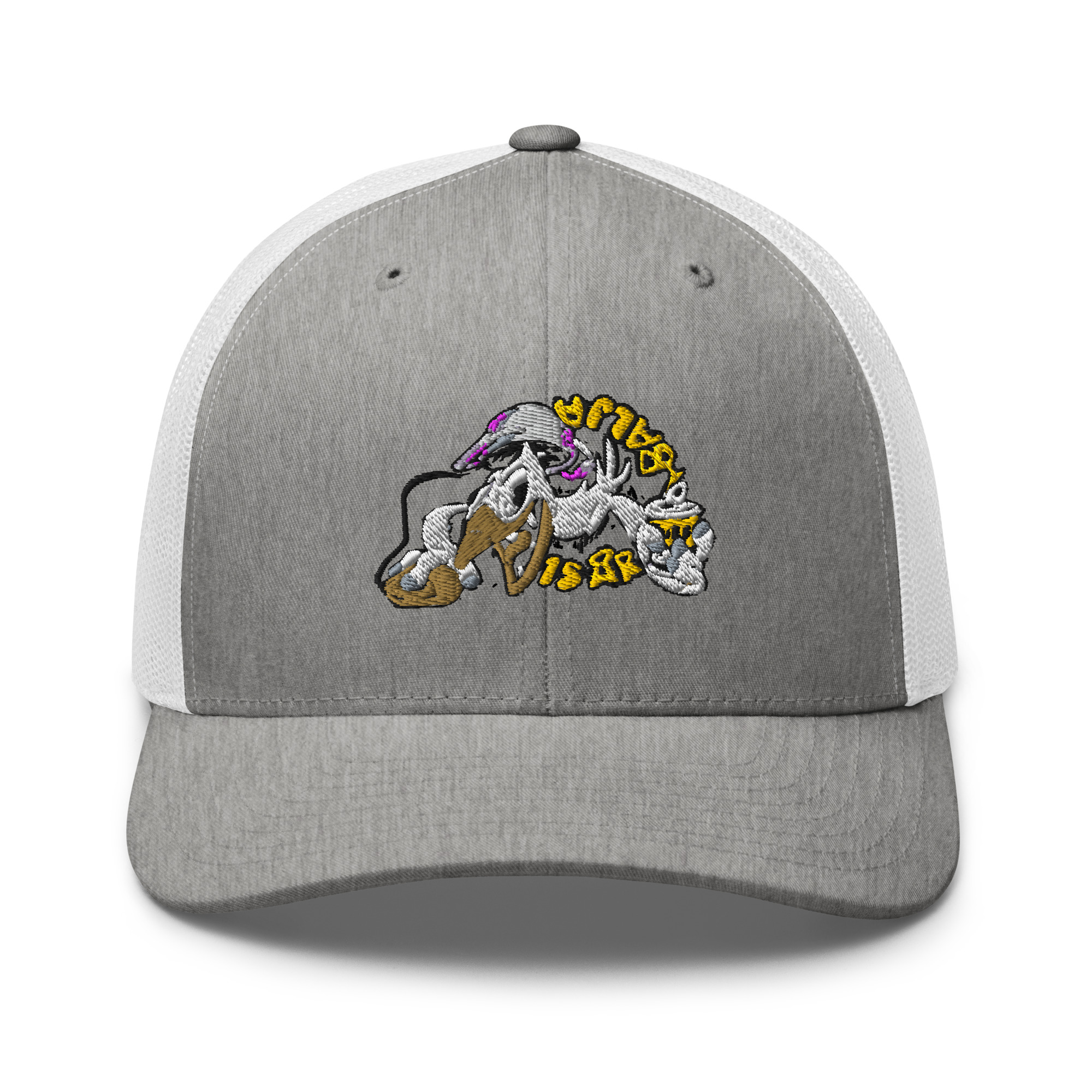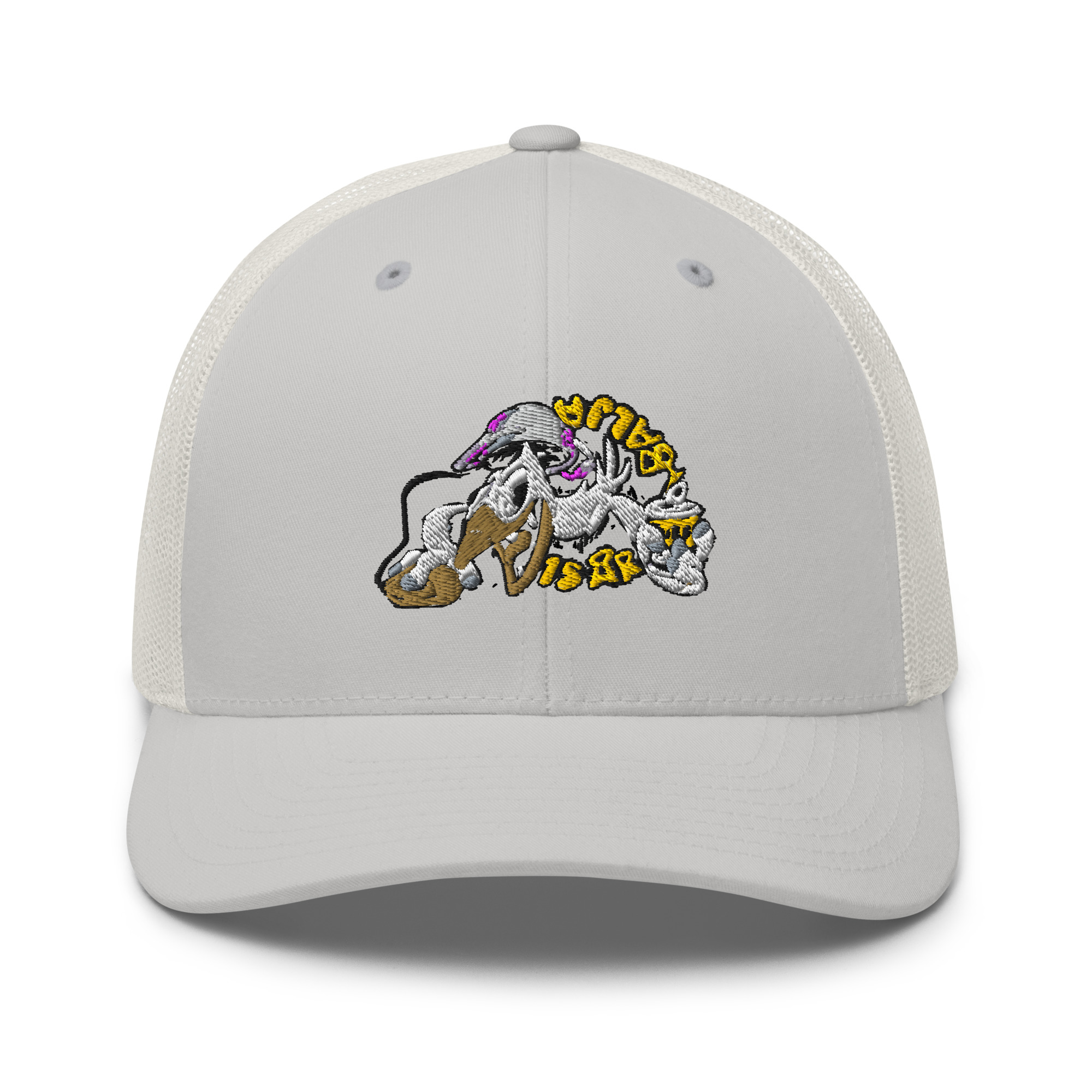 Create the perfect accessory by adding your embroidered designs to the Retro Trucker Hat. It has a structured fit with a mesh back that provides both comfort and a stylish look. What’s more, its selection of color options combined with your designs are sure to make it a crowd favorite!. 26% cotton, 74% polyester. Mid-profile cap with a low-profile embroidery area. Structured, six-panel cap. 3. 5″ crown (8. 9 cm). Hard buckram front panels. Mesh back. Permacurv® visor, matching undervisor. Plastic adjustable closure. Head circumference: 21⅝″–23⅝″ (54. 9 cm–60 cm). Blank product sourced from Vietnam or Bangladesh. This product is made on demand. No minimums.